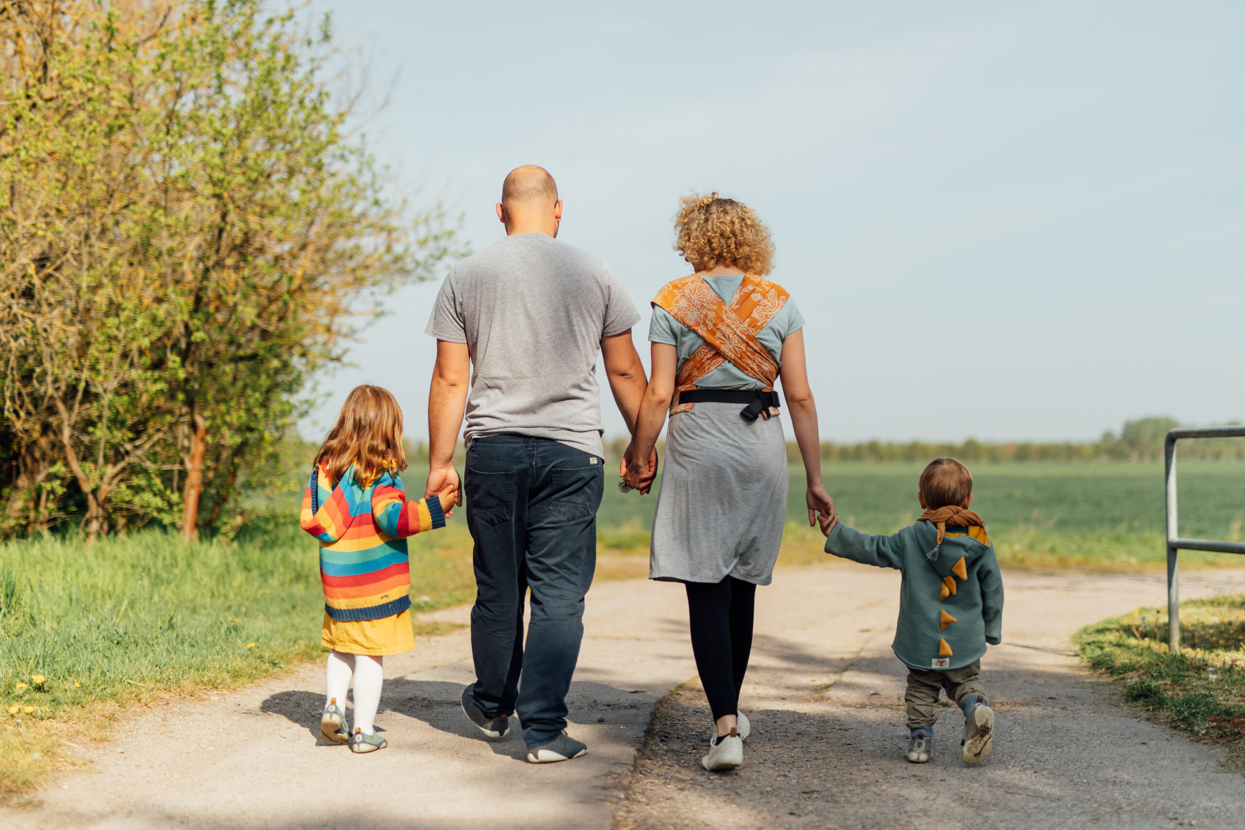 Ich habe eine Vierjährige die tiefgründige Fragen zum Leben und dem Tod hat. Einen Zweijährigen der noch ganz viel kuscheln und Begleitung bei ruhigen Spielen wie puzzeln braucht. Ein Baby das viel schläft aber das natürlich wenn es wach ist auch gesehen, besungen und geliebt werden will. Und das ich permanent in der Trage habe und das immer mir dabei ist.